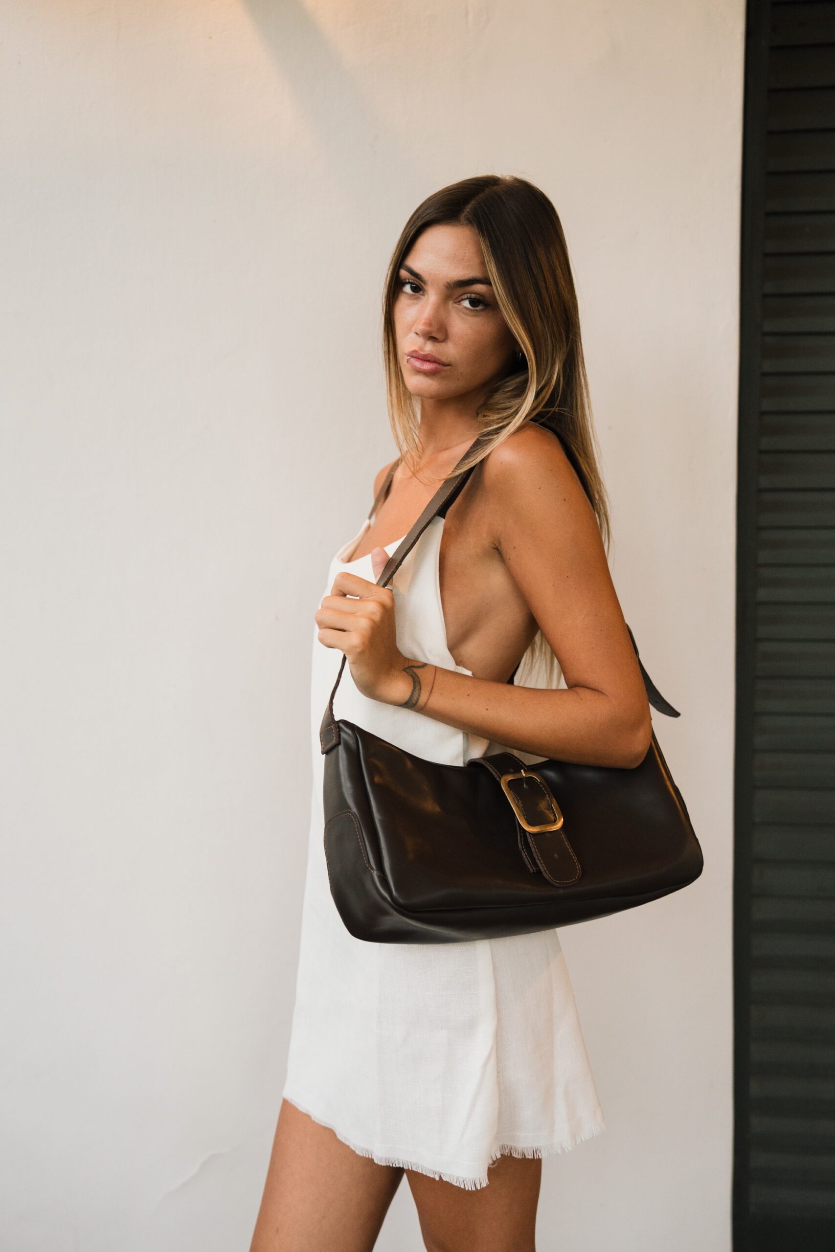 Top a una hebilla marrón