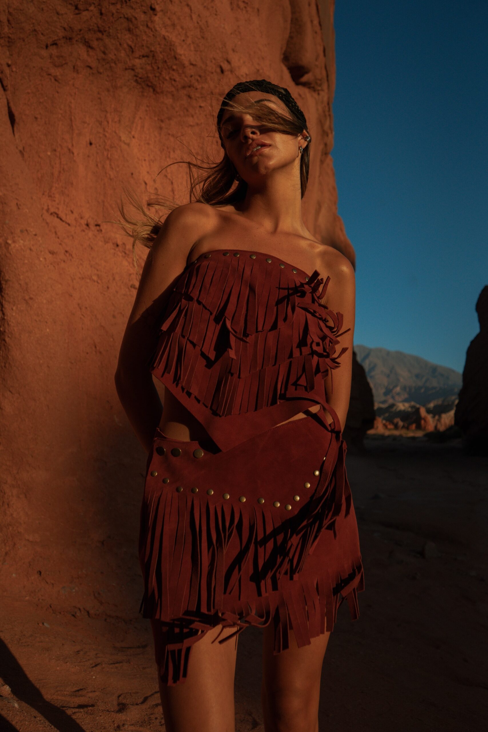 Pollera Roma gamuzado bordó