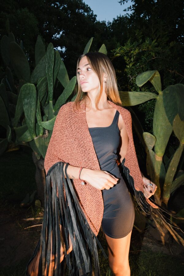 Poncho ladrillo flecos