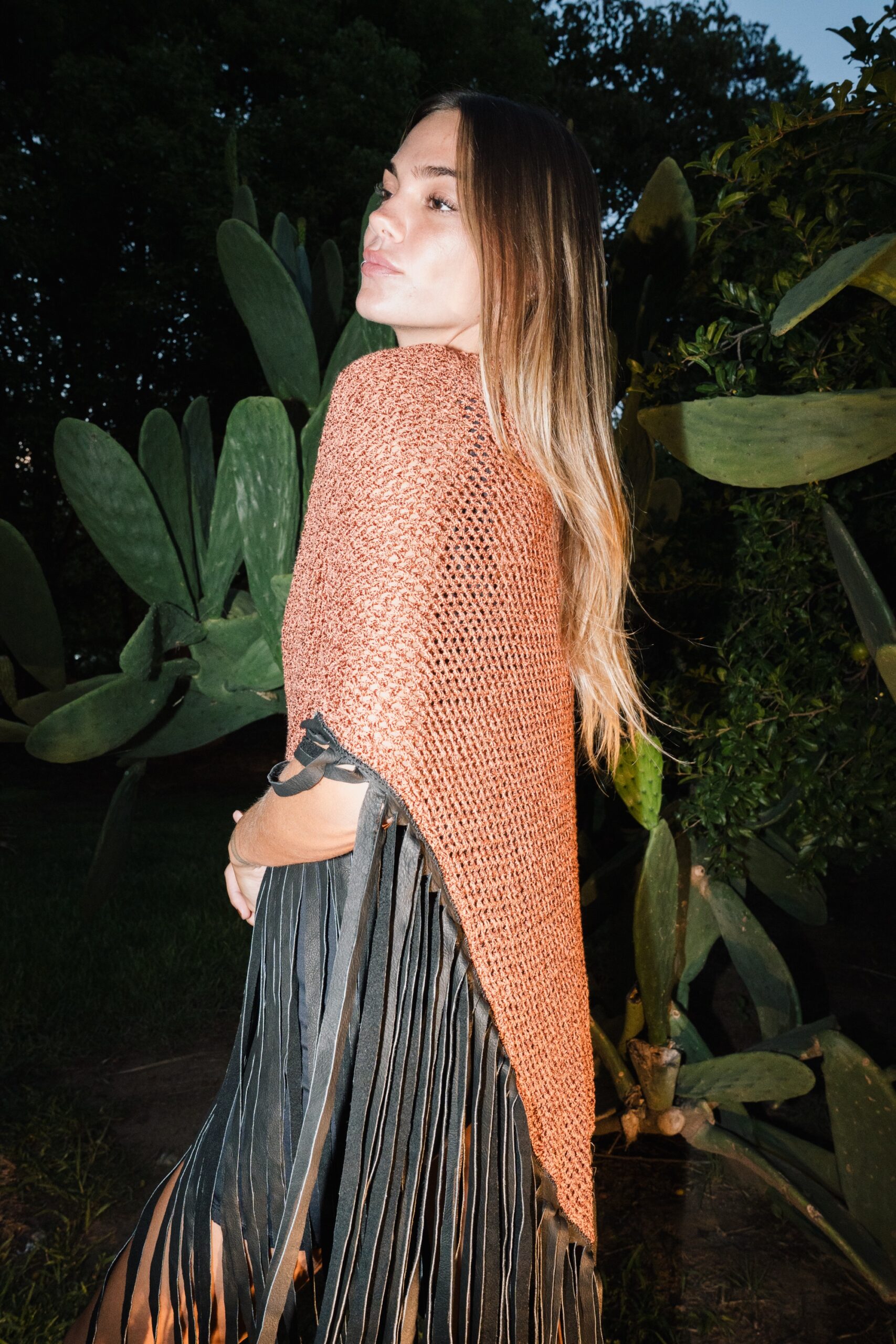 Poncho ladrillo flecos